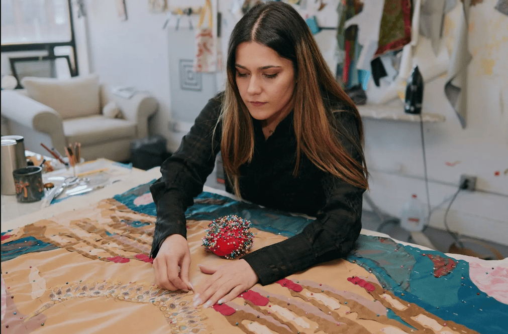“Working with fabric kind of made me much closer to who I was as an artist, as a refugee woman as well, as an immigrant,” she says. “My art is related to a lot of feelings and kind of memories of back home.”