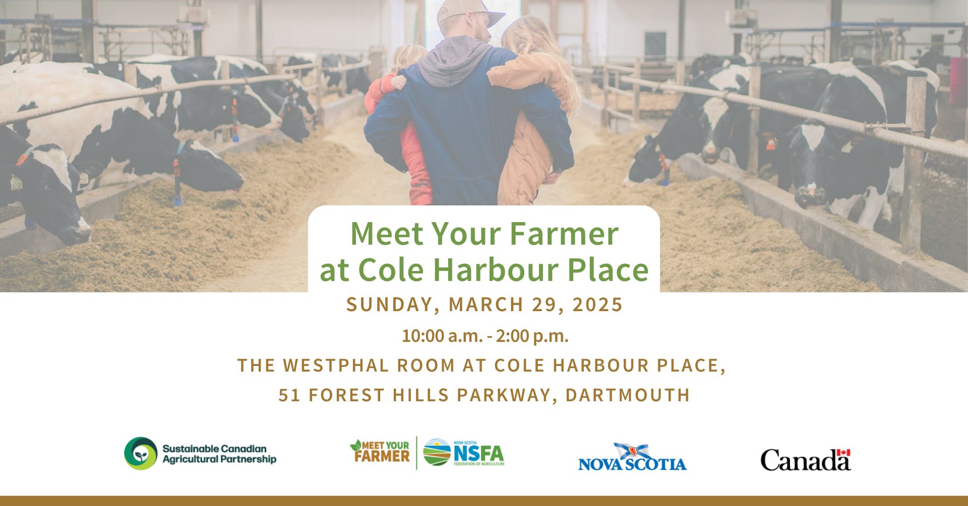 Meet Your Farmer at Cole Harbour Place on Sunday, March 29th. Drop in to this free family event anytime between 10:00 a.m. and 2:00